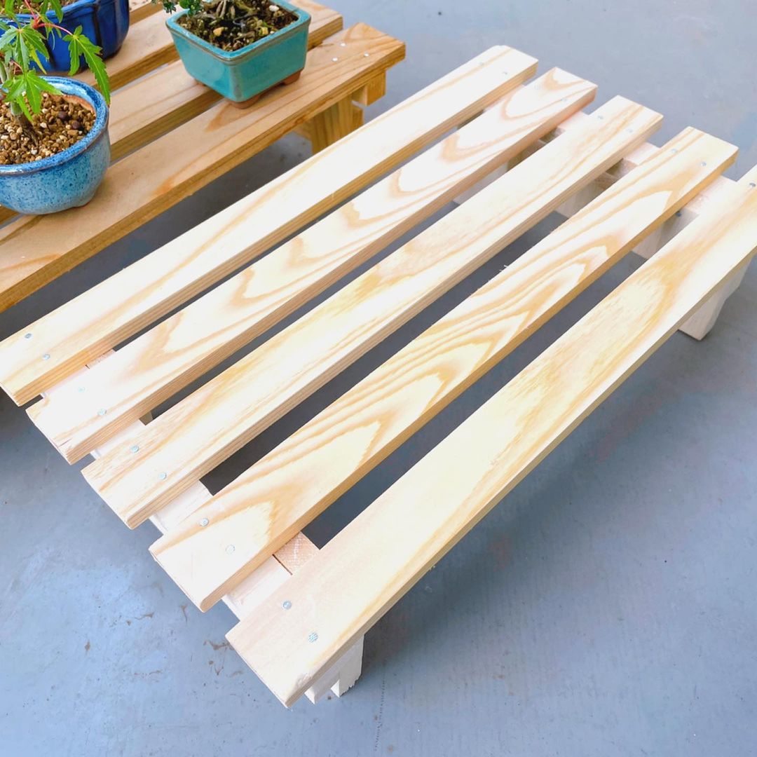 2021.06.18 盆栽棚を追加しました🔨ホムセンの端材目当てなので前回のとサイズがちょっと違うけどこれはこれで手作り感あってよい…ってこうして比べて見ると前回ののエイジングがいい感じだ😳 2021.07.17 2021.06.12