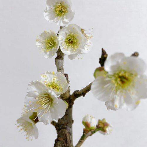 甲州野梅が咲きました🫶🏻鑑賞するため部屋内に置いといたら暖かさでどんどこ開いてきたので、夜間は外に置…