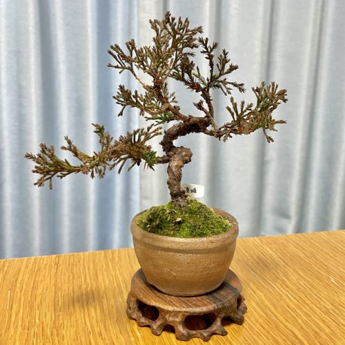 去年2月藤樹園ヒルマさんWSでかけた真柏の針金🪴あったかくなる前にと外しました曲はしっかりついたけど…