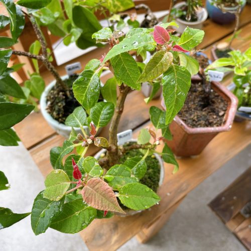 9/12から短日処理していたプリンセチア。新芽の赤みとも違う赤さが、ほんのりとつき始めています☺️