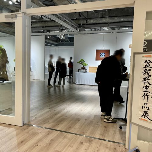 藤樹園盆栽教室作品展@大宮門街🪴ガラスで開放感あるエントランスに、白が基調でライティングのこだわりが…