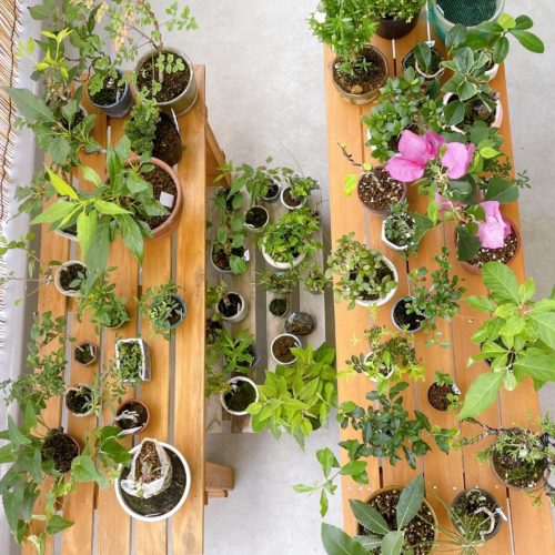 盆栽棚、新しく作った4代目と3代目に防腐塗料を塗ったら立派になった〜〜〜✨✨スペースが増えたおかげで…