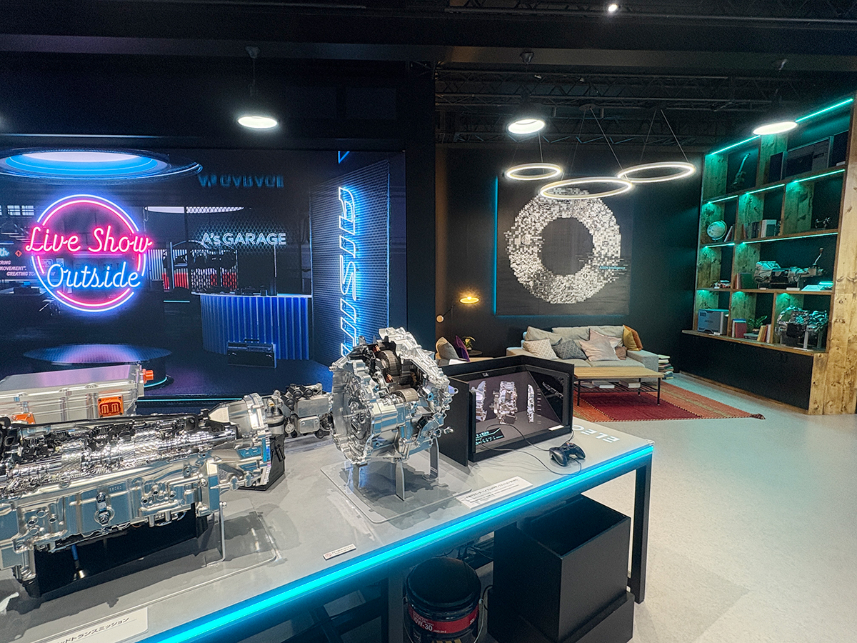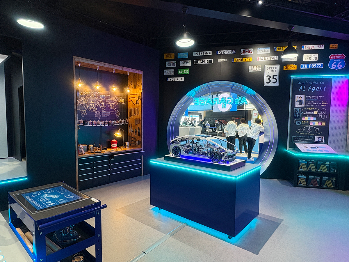 ブースの内装は、アイシン博士のガレージをイメージ。